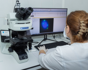 Within the framework of “One Day Clinic” project, the Foundations installed laboratory equipment for FISH-diagnostics for 79,541,284 Tenge at Regional Perinatal Centre No. 2 in Turkestan region. This is a microscope that detects chromosomal abnormalities in the fetus early in pregnancy and identifies congenital abnormalities such as Down, Patau, Edwards, Sherechevsky-Turner and Klinefelter syndromes. The One Day Clinic allows expectant mums to get all in-depth biochemical tests and expert ultrasound examination at one place in one day with the expenses covered by the Compulsory Social Health Insurance (CSHI).