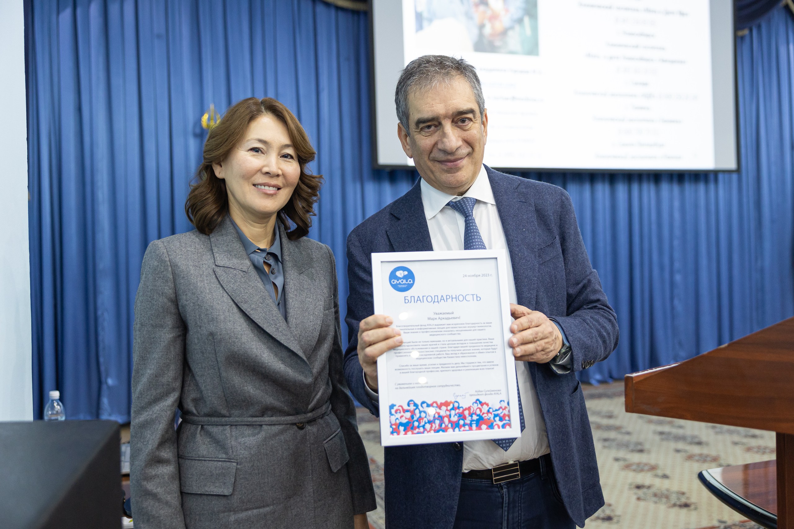 AYALA Charitable Foundation organized lectures by Academician of the Russian Academy of Sciences Mark Arkadyevich Kurtser, Doctor of Medical Sciences, Professor, when hundreds of Kazakhstani doctors were able to listen to them. The training was implemented within the framework of the Memorandum of Cooperation signed in October 2023 with the Public Health Department of Almaty.