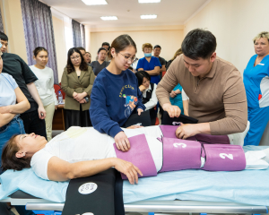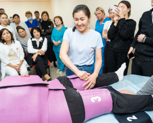 The developer of the updated clinical protocol, Professor G.B.Bapayeva, today holds a master class on the use of this garment for medical staff of obstetric organisations, ambulance stations of Astana and for the staff of the Department of Obstetrics and Gynaecology of the Medical University.