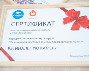 Retinopathy of Prematurity Project of AYALA Charity Foundation will help reduce visual impairment in newborns in Karaganda oblast. A retinal camera was installed in the Perinatal Centre No. 1 of the Oblast Clinical Hospital. It has already helped diagnose more than 20 high-risk newborns.