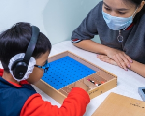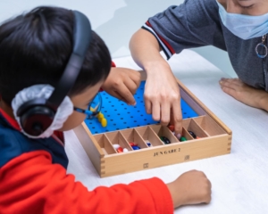 Using the TOMATIS method, for 25 minutes, a child, wearing special headphones, engages in activities that interest him: elements of art therapy, sand therapy, and various play practices are used.