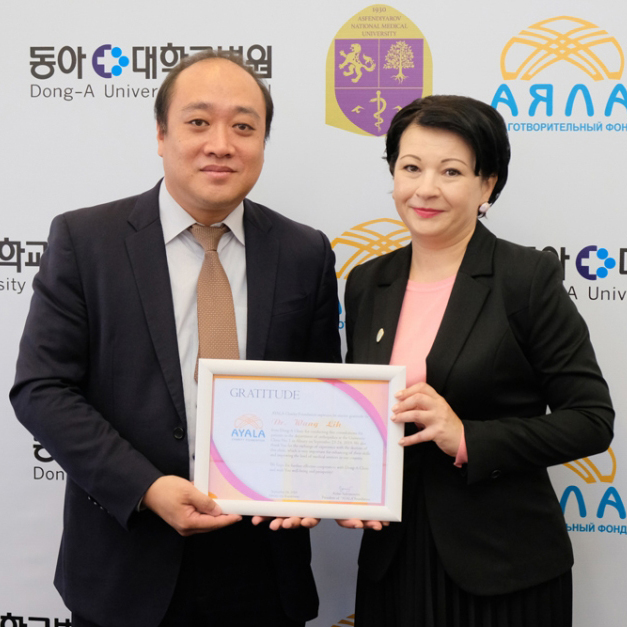 Отметим, что сотрудничество фонда «АЯЛА» с клиникой «Донг-А» началось с приезда в Казахстан ведущих врачей этой клиники. При содействии фонда 23 и 24 сентября профессор кафедры оториноларингологии Бэ Ву-Йонг и профессор кафедры неврологии Ким Чжон Гук бесплатно консультировали пациентов в возрасте до 18 лет, которые проходят лечение в Университетской клинике №1 НАО «Национальный Медицинский Университет» (ранее Аксайская детская клиника). По результатам этих консультаций клиникой «Донг-А» будет определен один ребенок, которого пригласят в Южную Корею на бесплатное лечение по профильным для этой клиники заболеваниям.